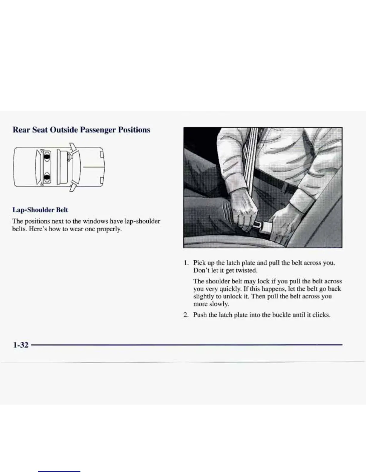 Pick up the latch plate and pull the belt across you.