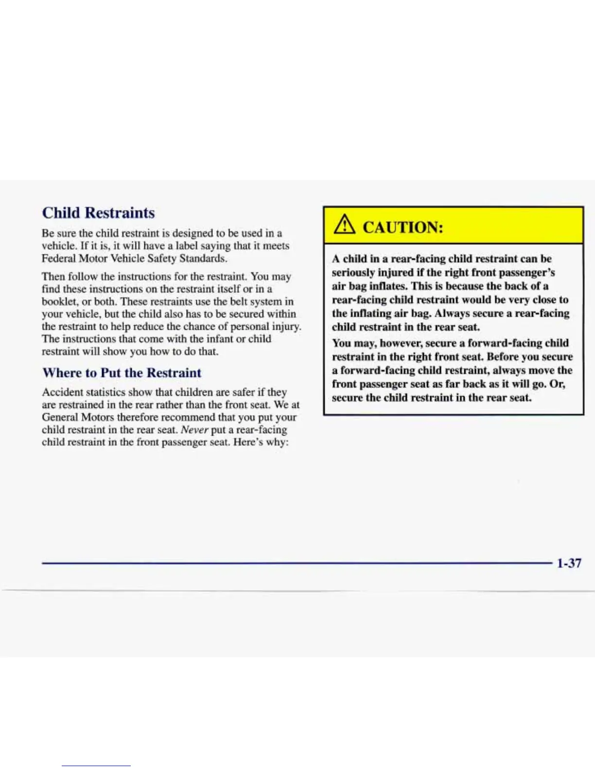 Be sure the child restraint is designed