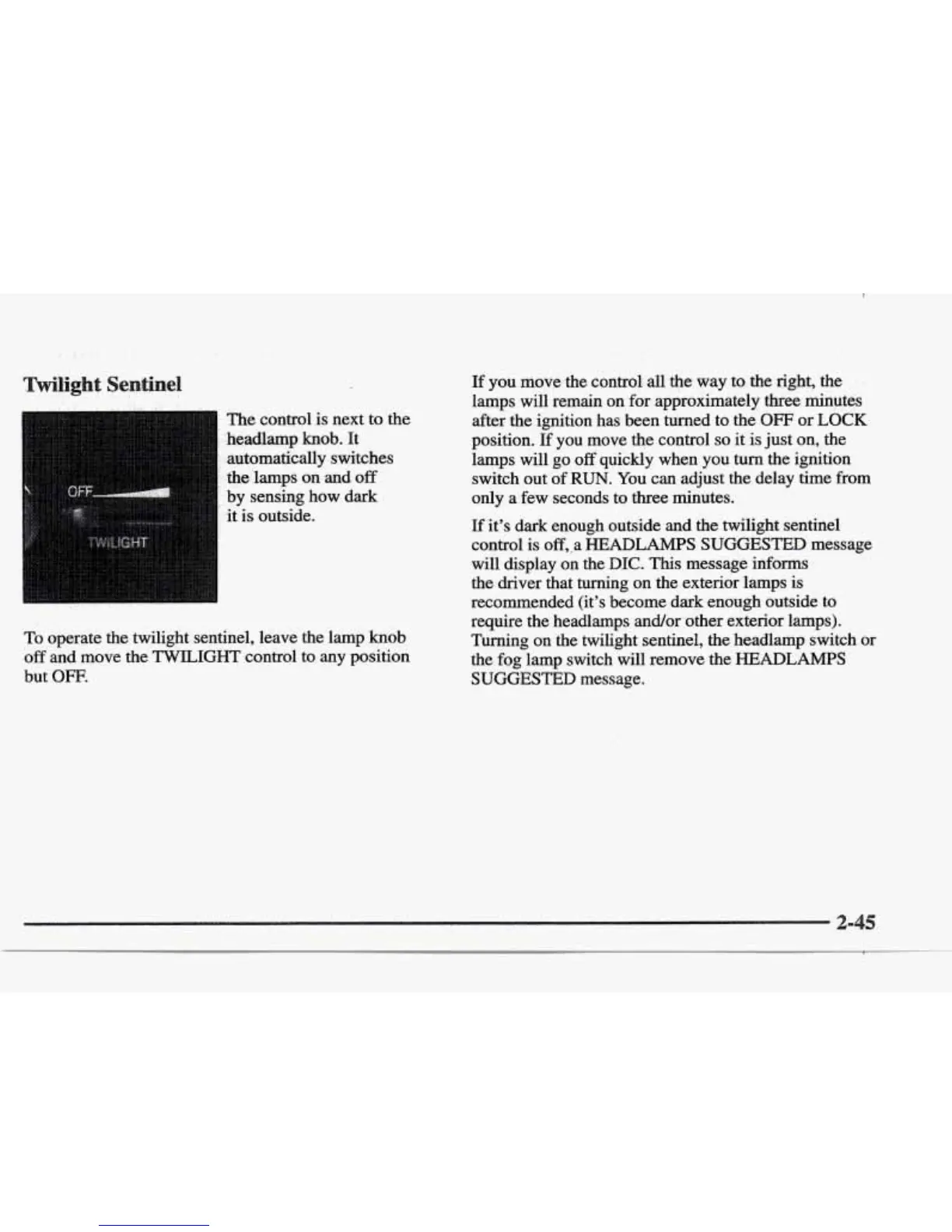 Turning on the twilight sentinel, the headlamp switch