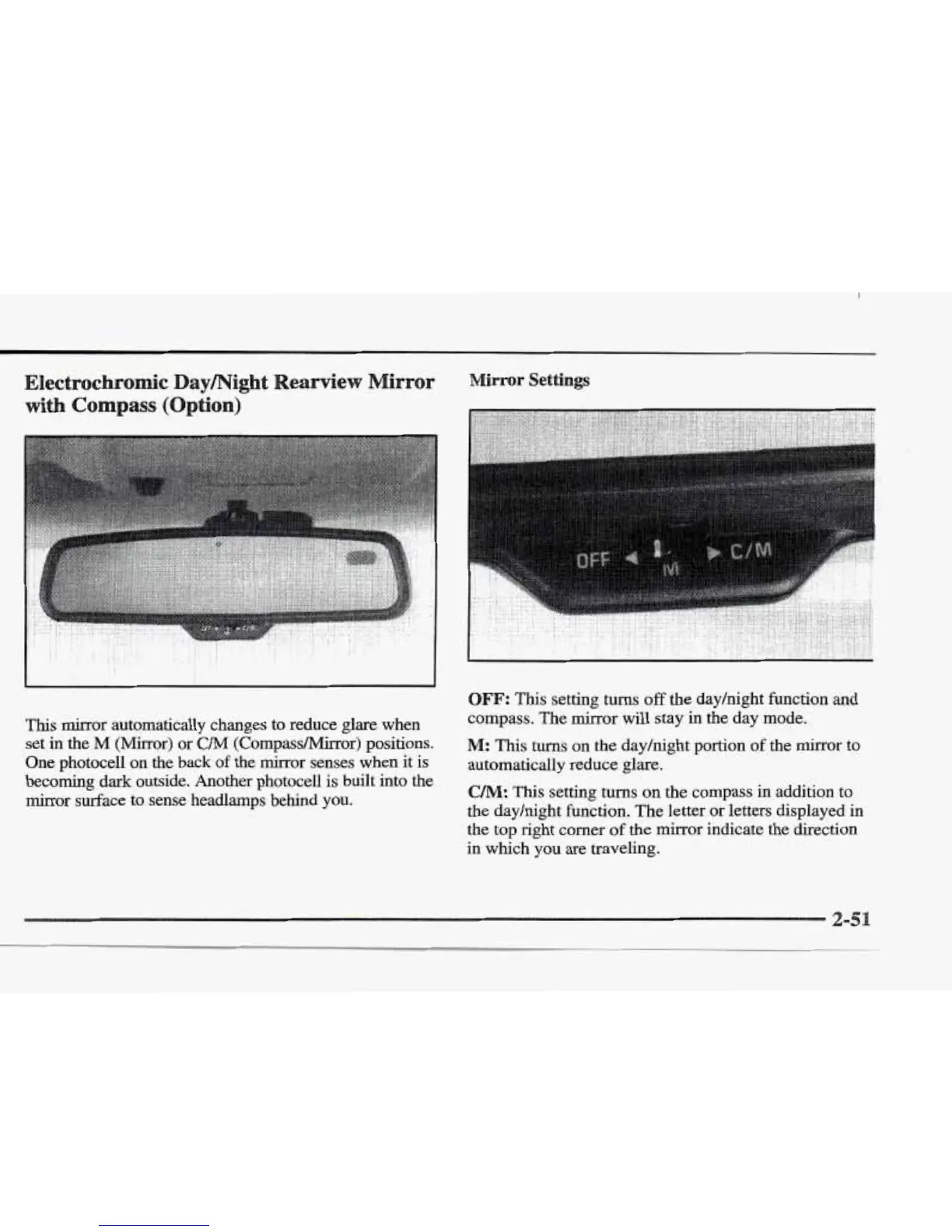 compass. The mirror will stay in the day mode.