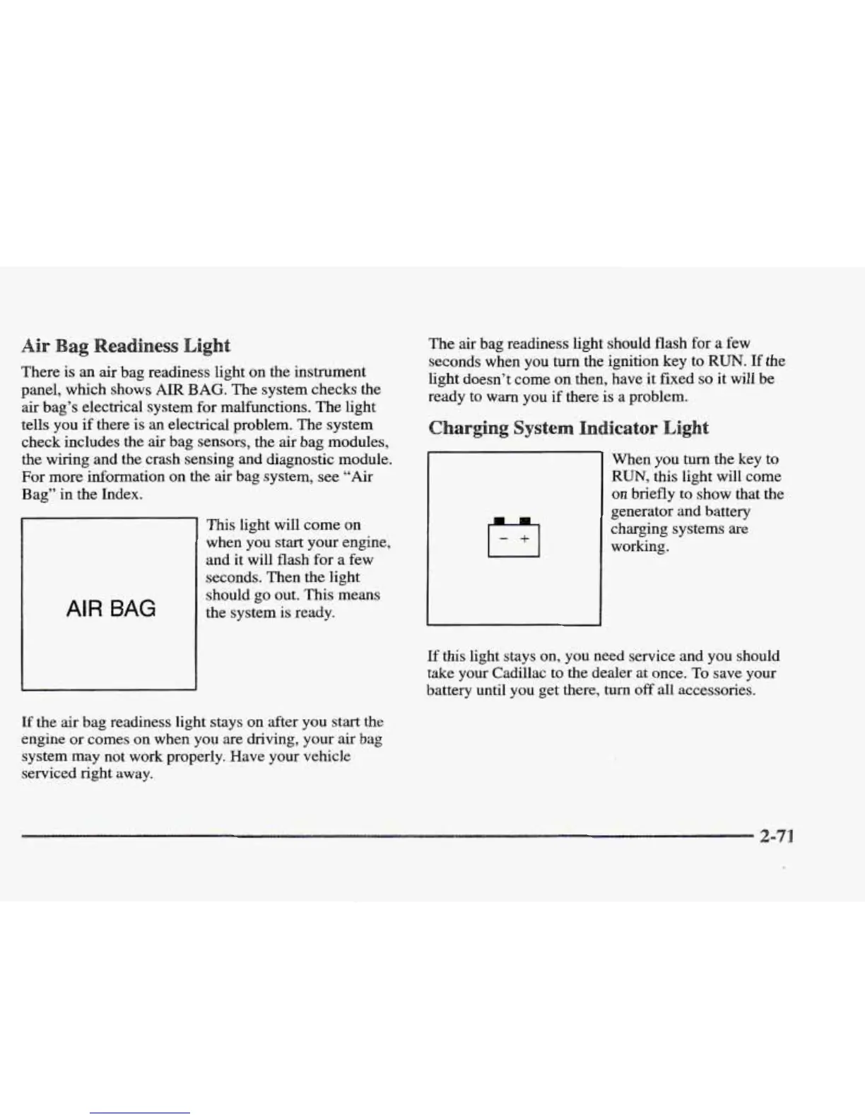 air bag’s electrical system for malfunctions. The light