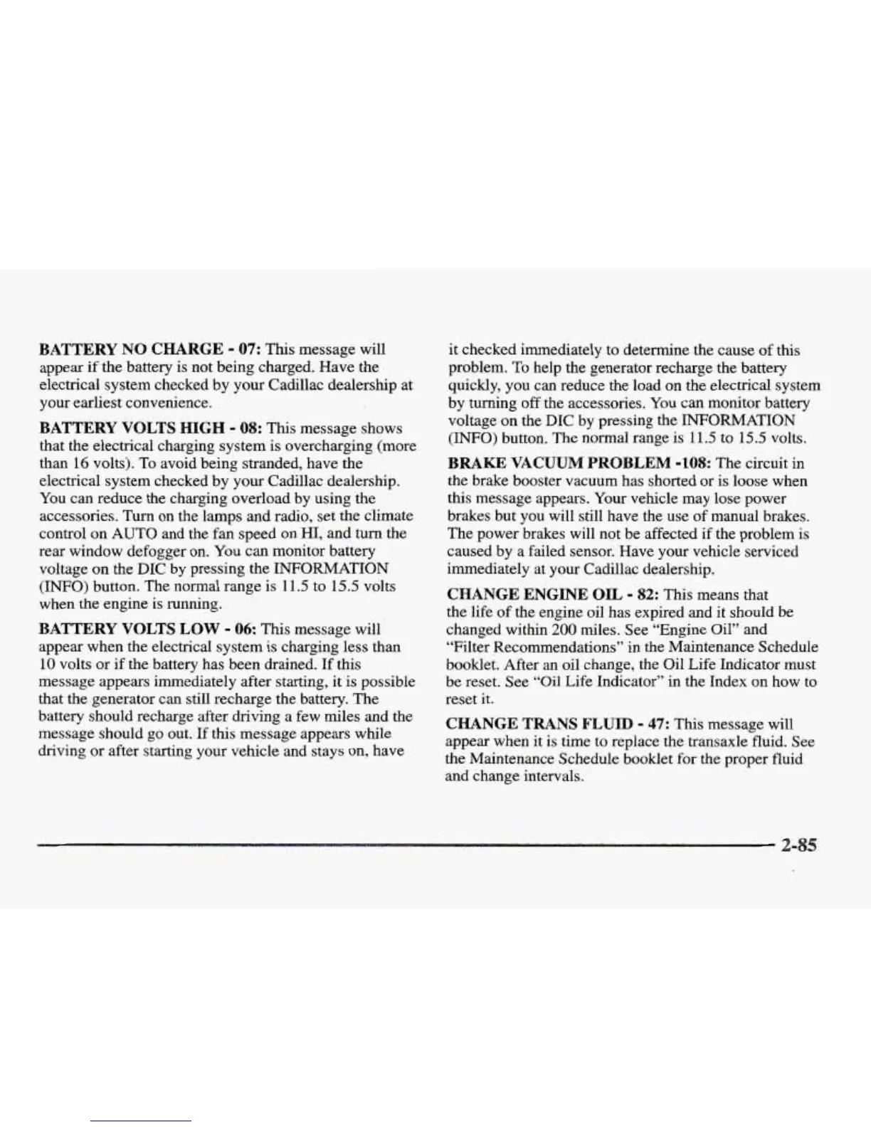 electrical system checked by your Cadillac dealership.