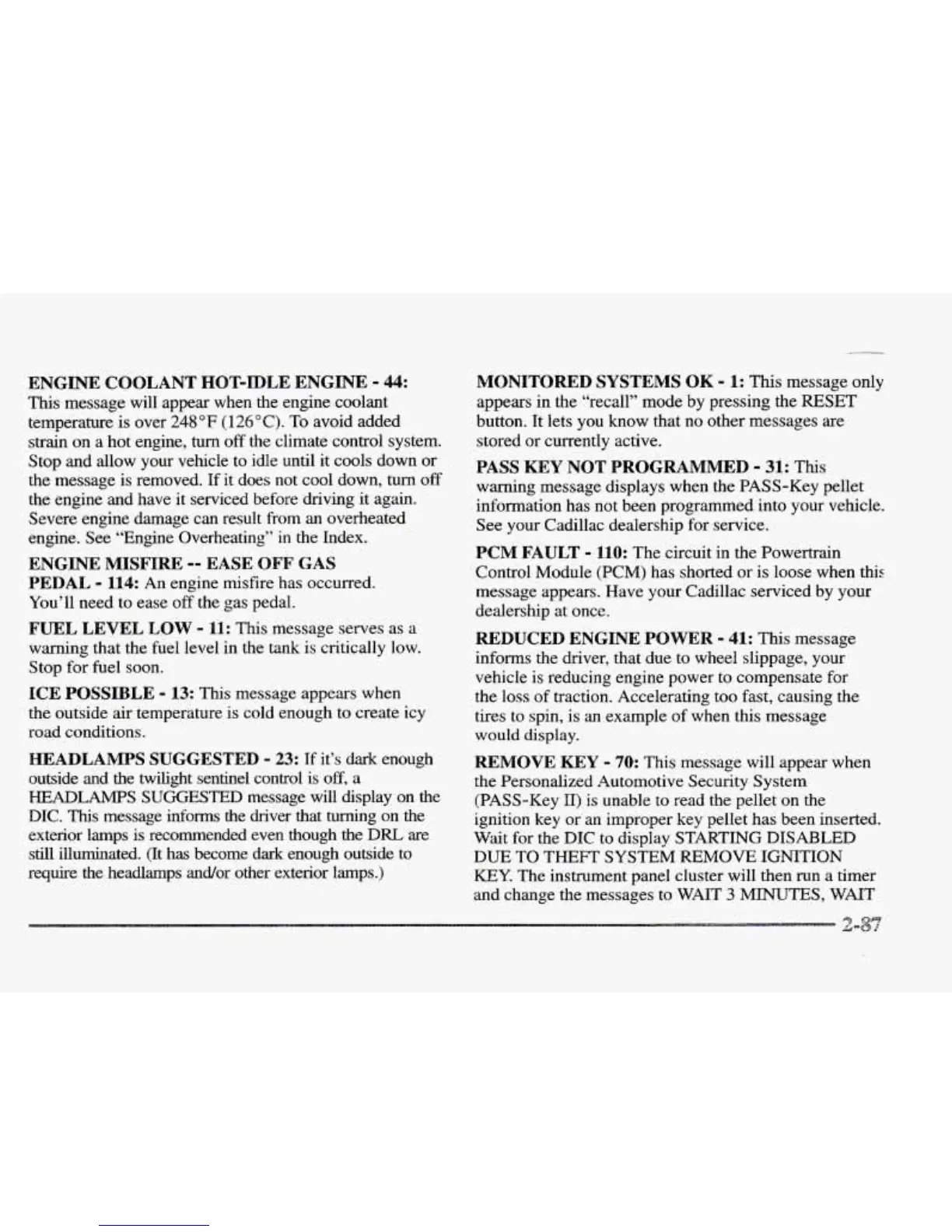 engine. See “Engine Overheating”