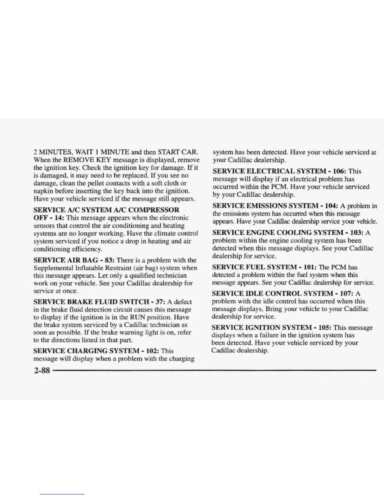 detected when this message displays. See your Cadillac