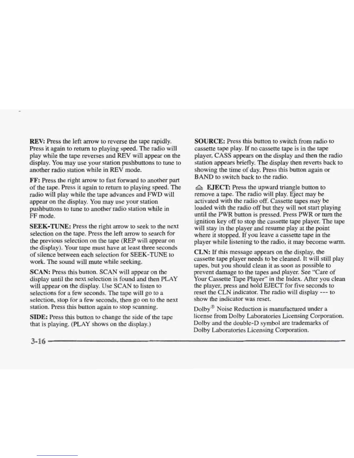 tape. The radio will play. Eject may be