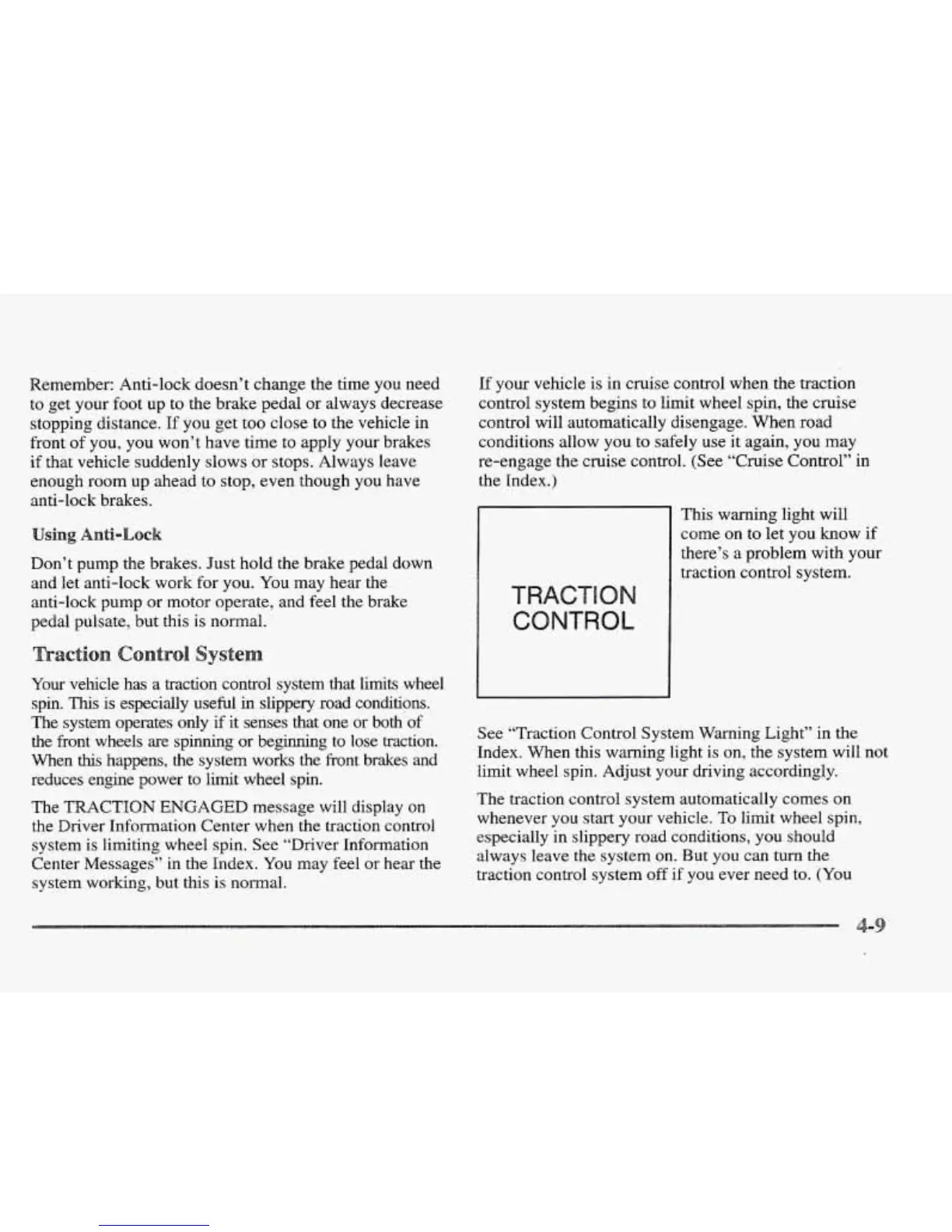 See “Traction Control System Warning Light” in the