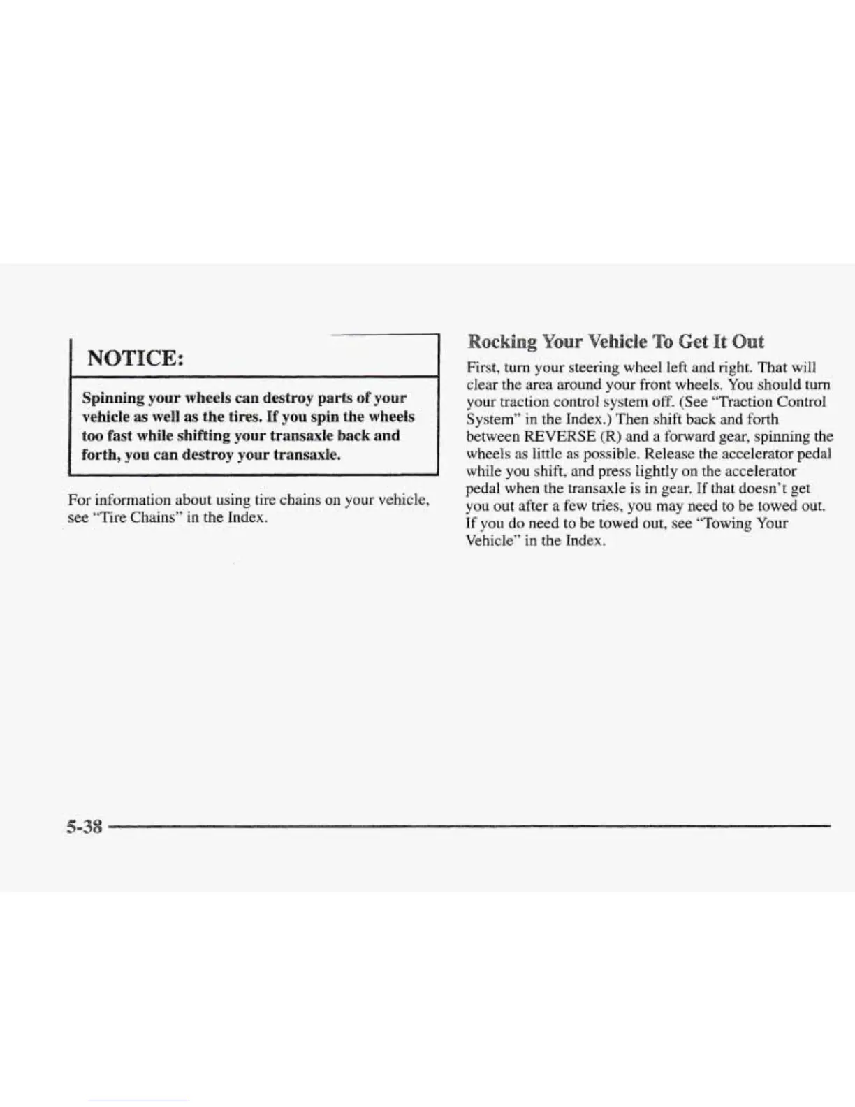 see “Tire Chains” in the Index.