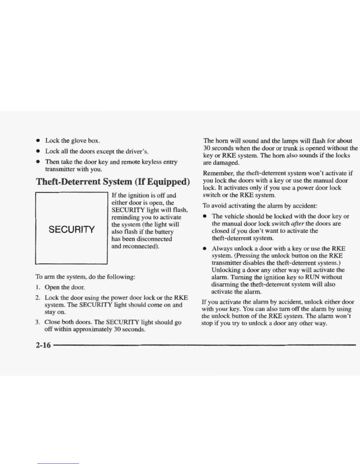 transmitter disables the theft-deterrent system.)
