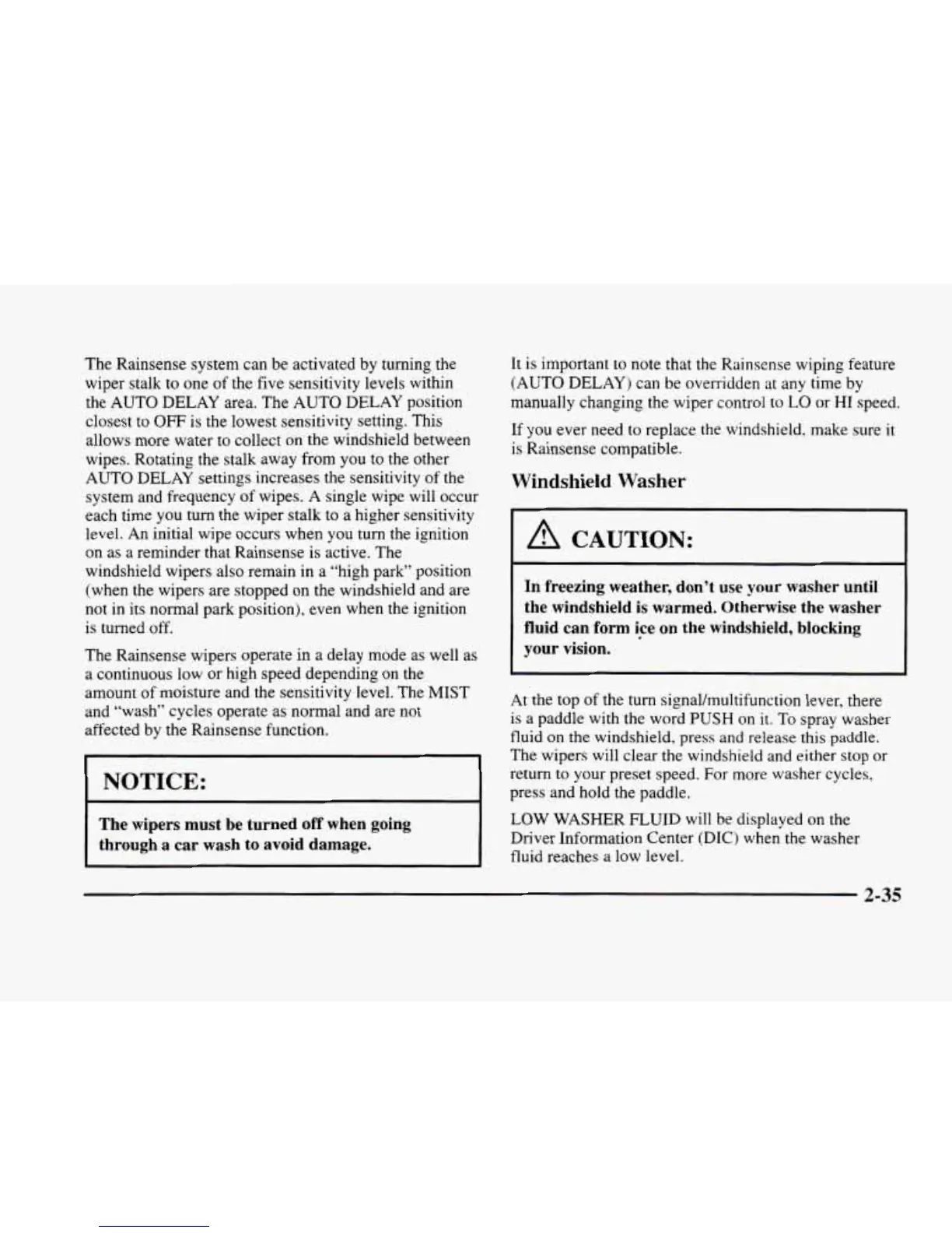 The Rainsense wipers operate in a delay mode as well as
