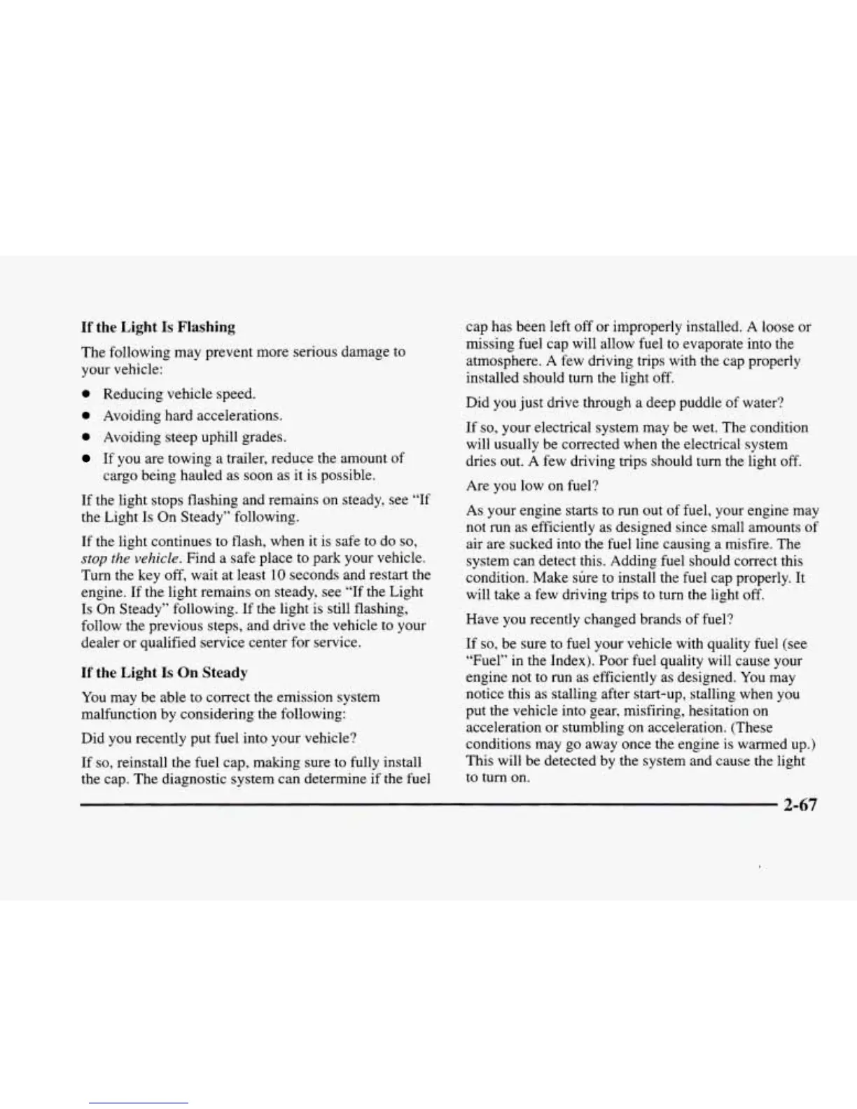 If so, be sure to fuel your vehicle with quality fuel (see
