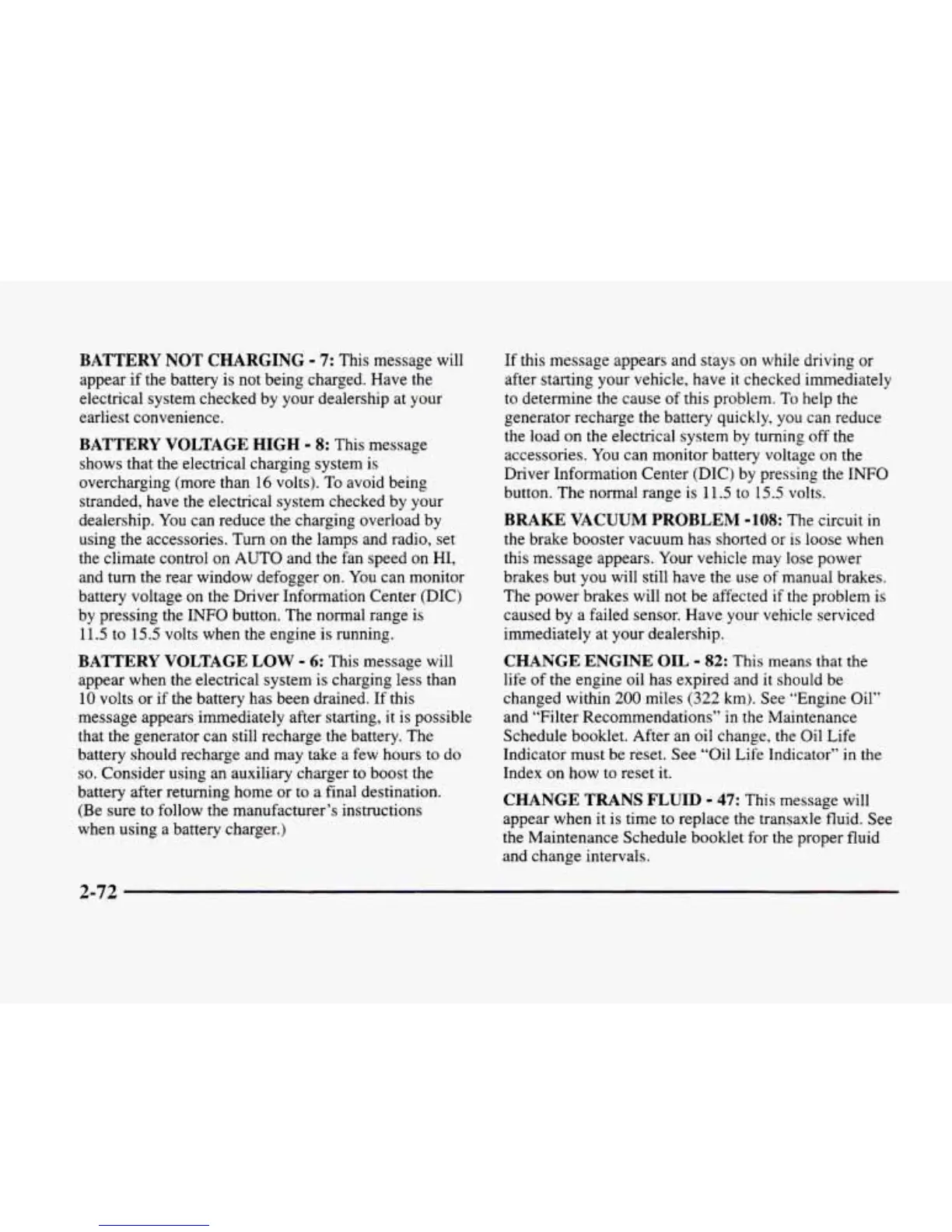 appear when it is time to replace the transaxle fluid. See