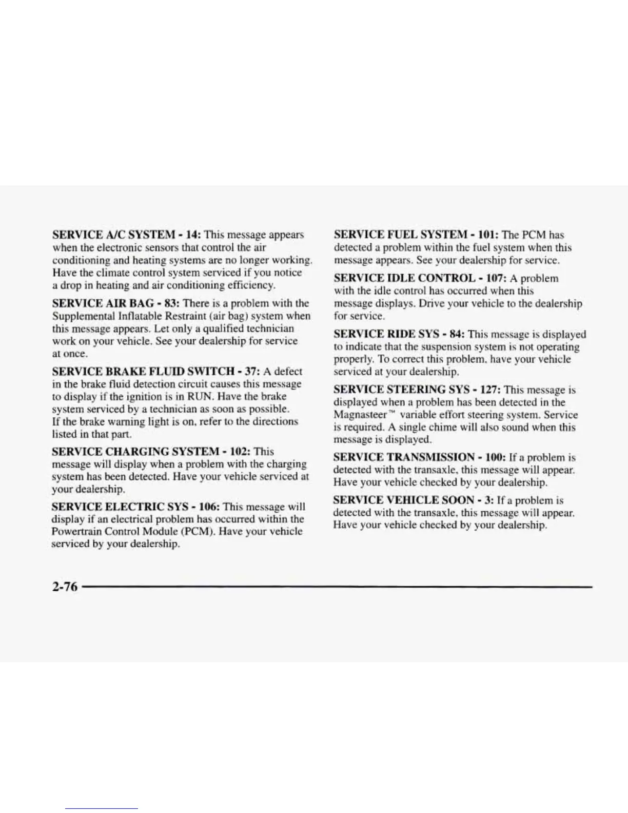 your vehicle. See your dealership for service