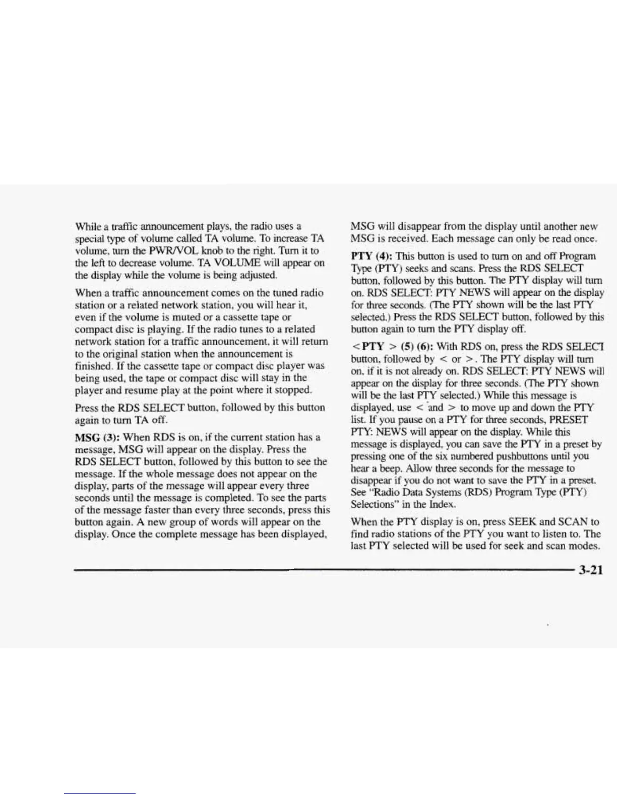 last PTY selected will be used for seek and scan modes.