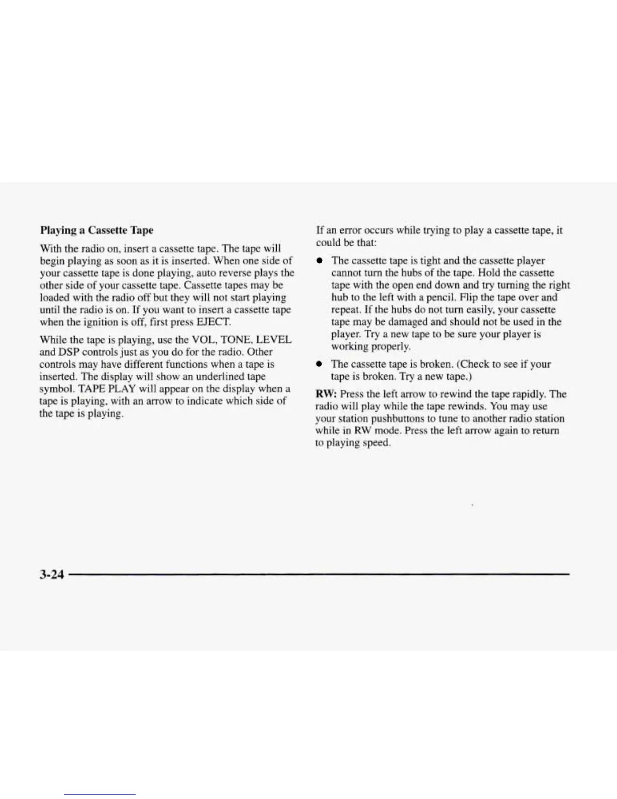 until the radio is on. If you want to insert a cassette tape