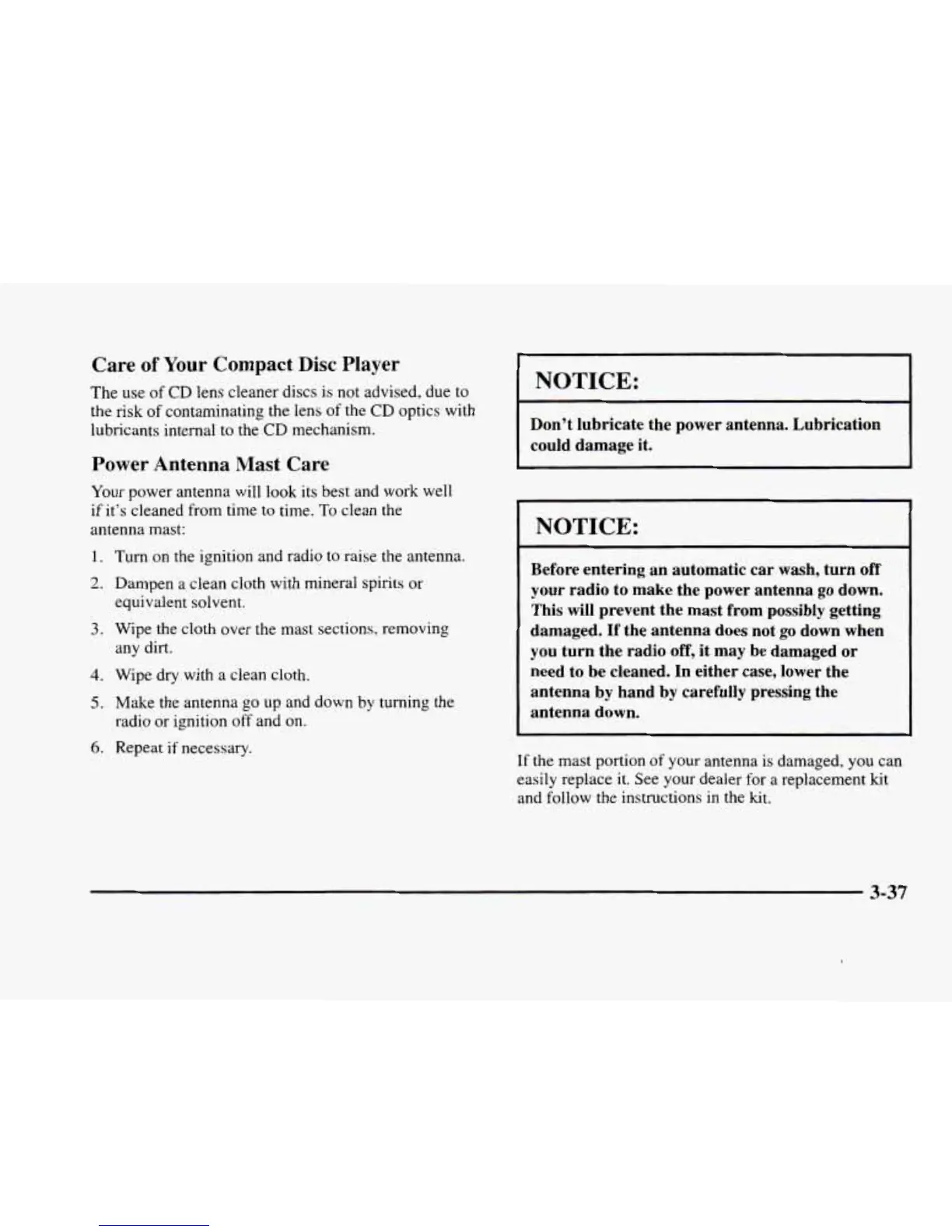 Don't lubricate the power antenna. Lubrication