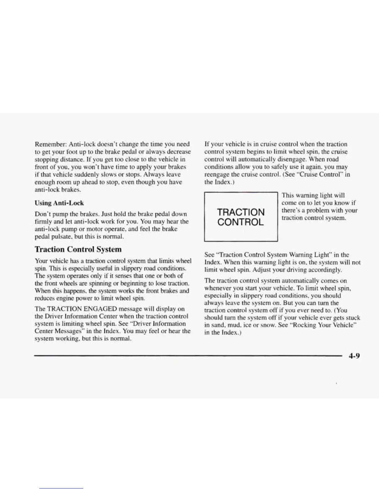 See “Traction Control System Warning Light” in the