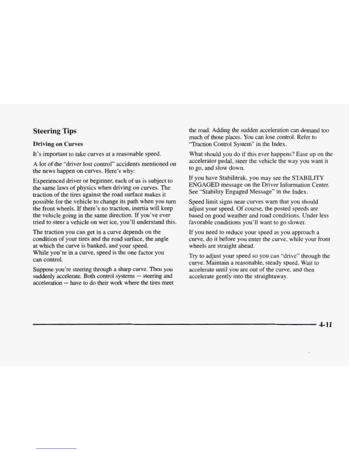 curve. Maintain a reasonable, steady speed. Wait to