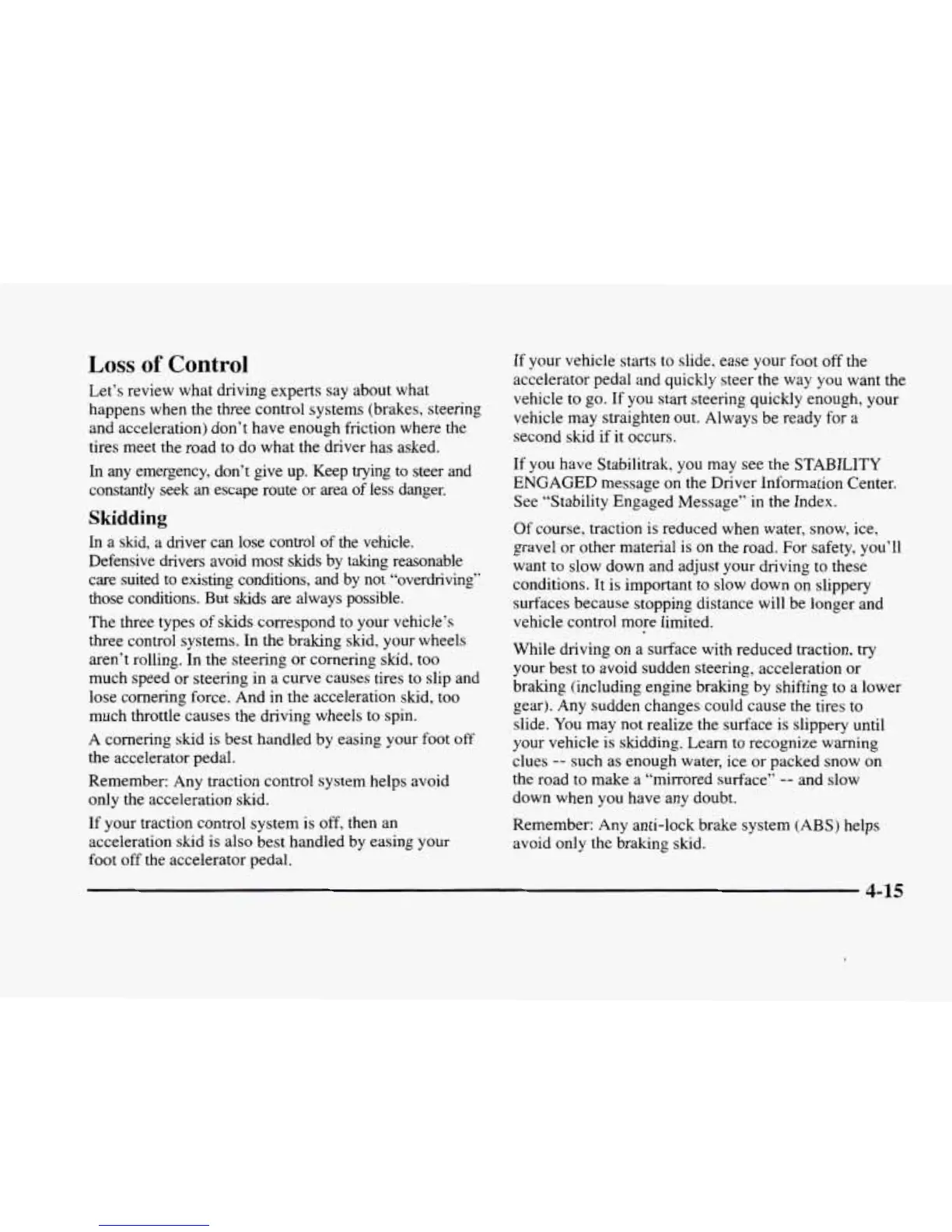 your vehicle is skidding. Learn to recognize warning