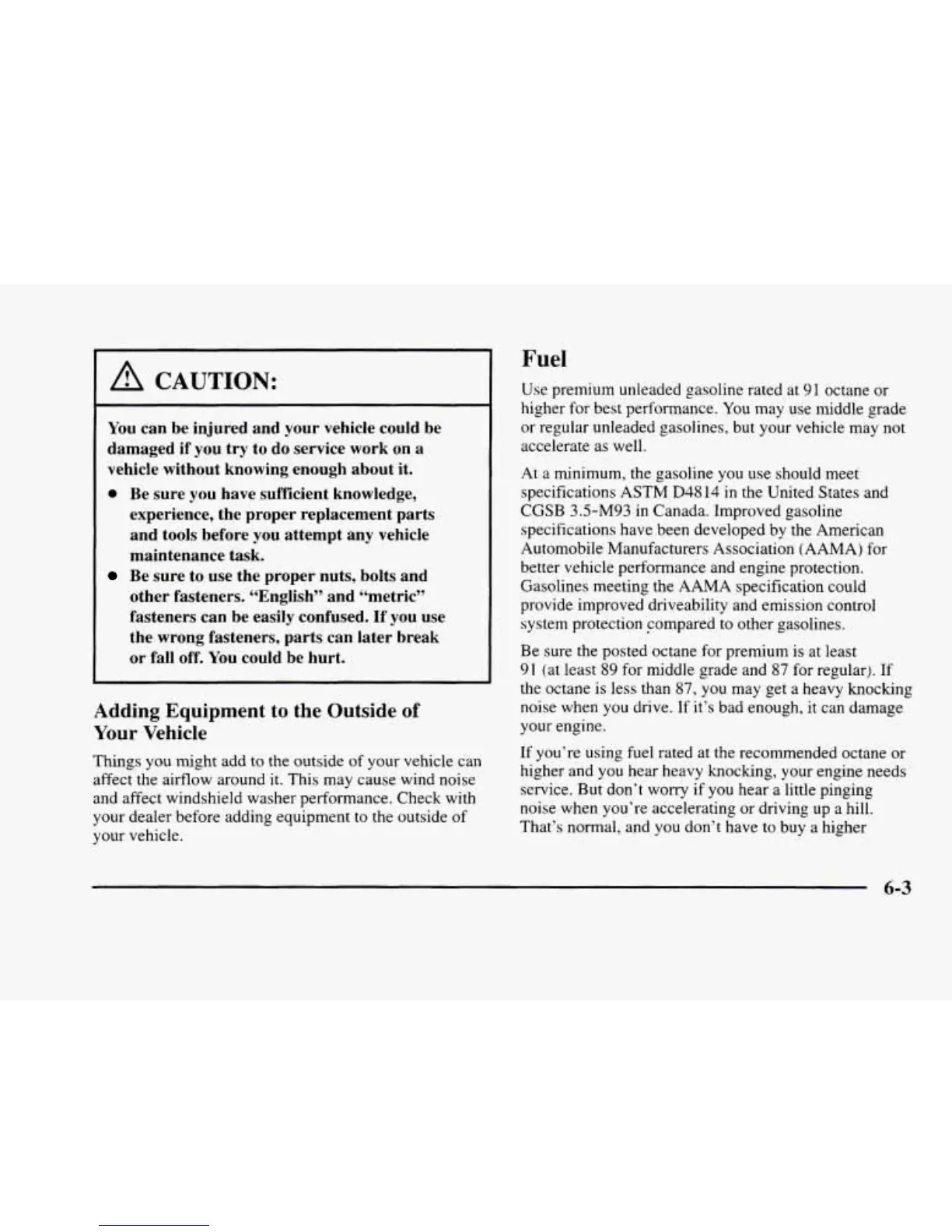 or regular unleaded gasolines, but your vehicle may not
