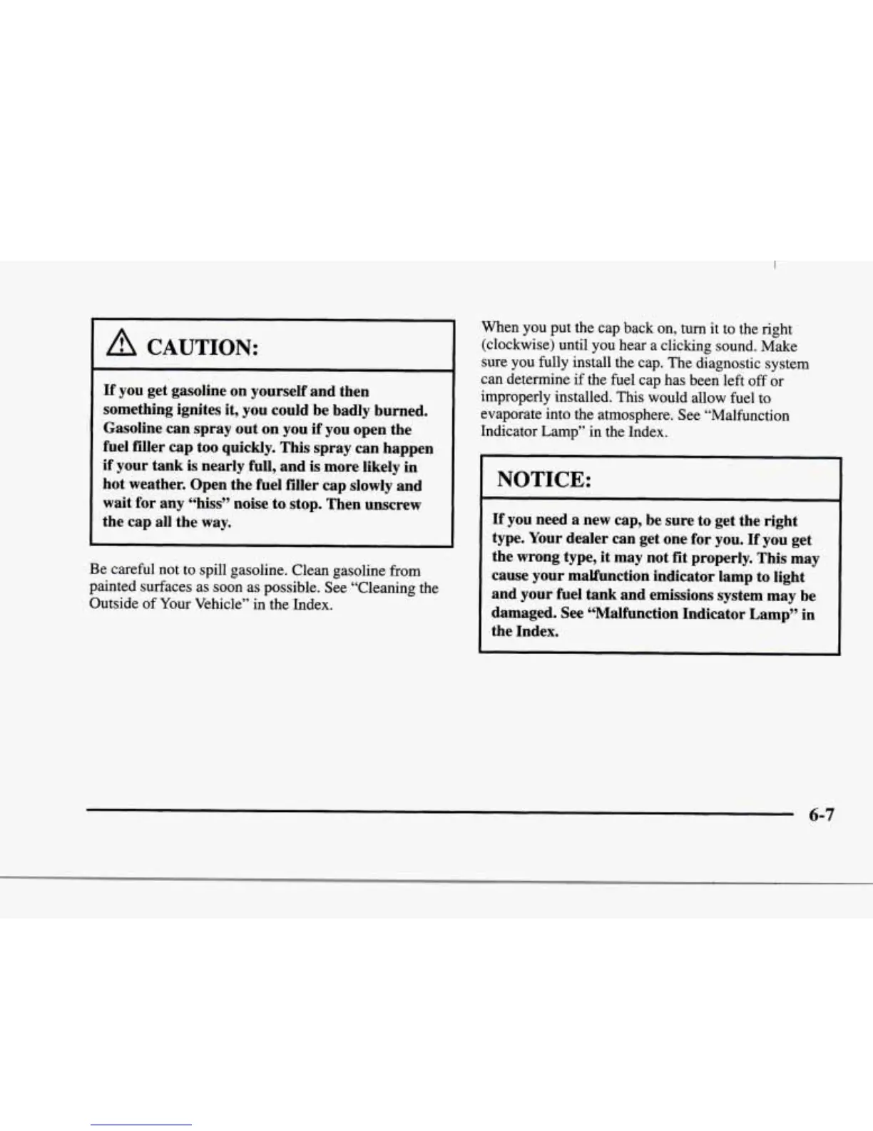 fuel filler cap too quickly. This spray can happen