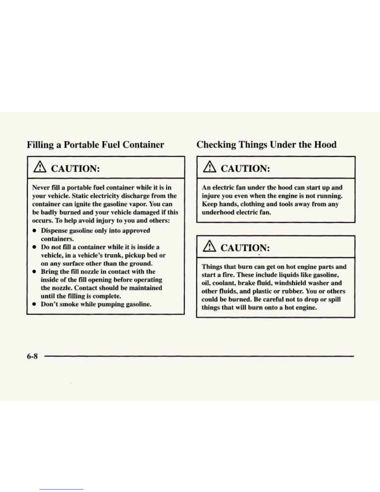 Never fill a portable fuel container while it is in