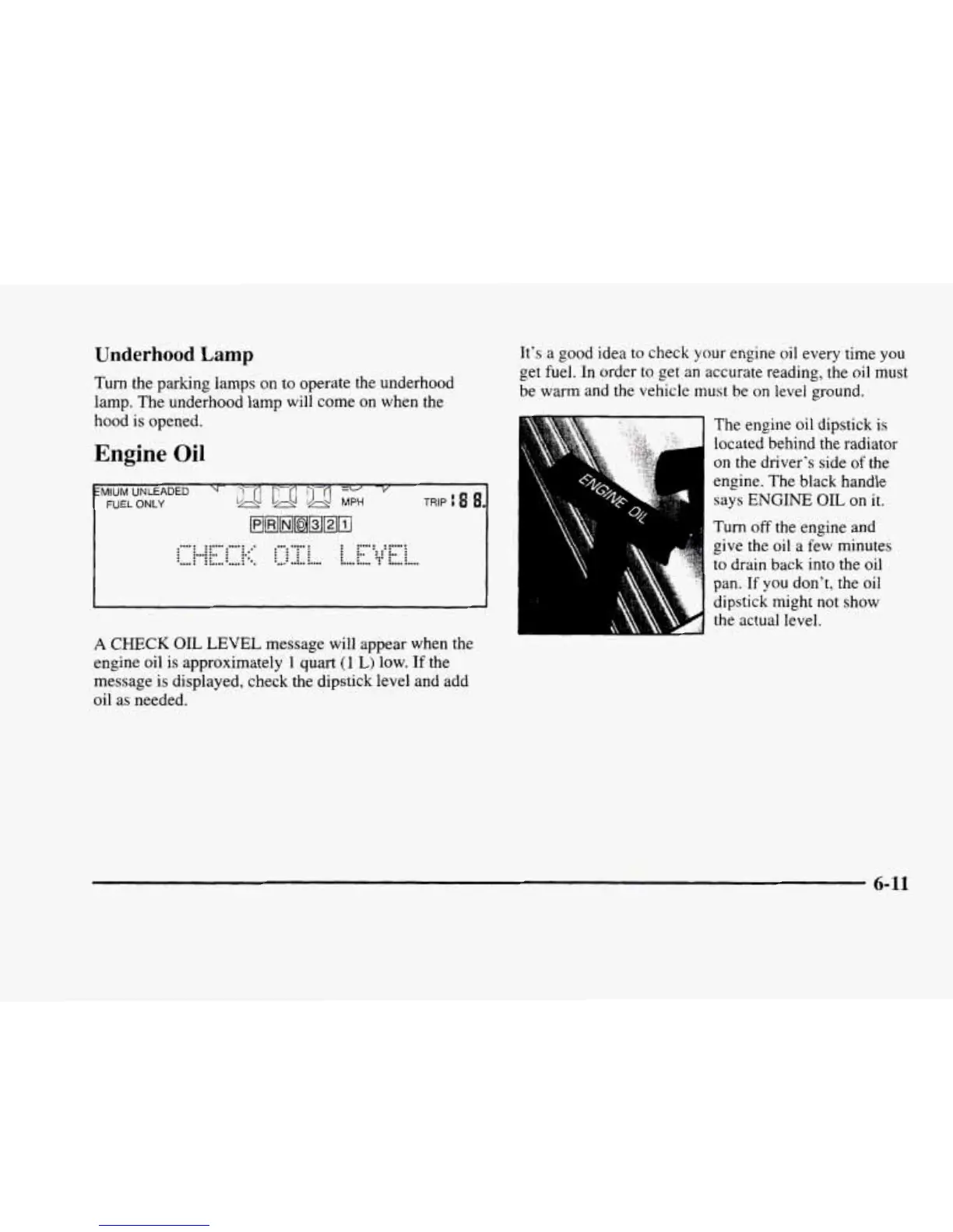 message is displayed, check the dipstick level and add