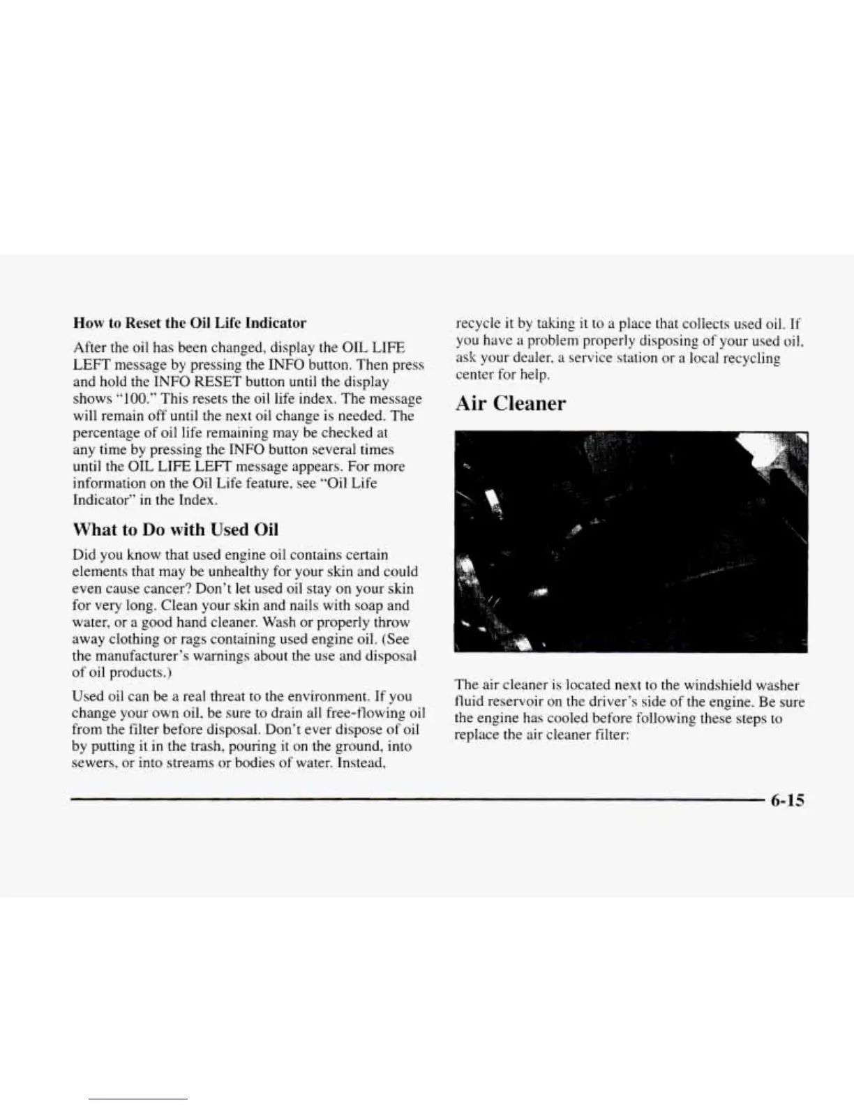 information on the Oil Life feature, see “Oil Life