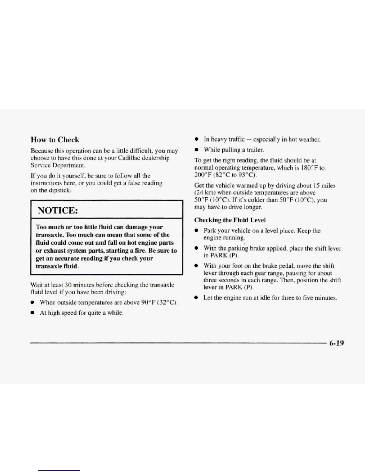 minutes before checking the transaxle