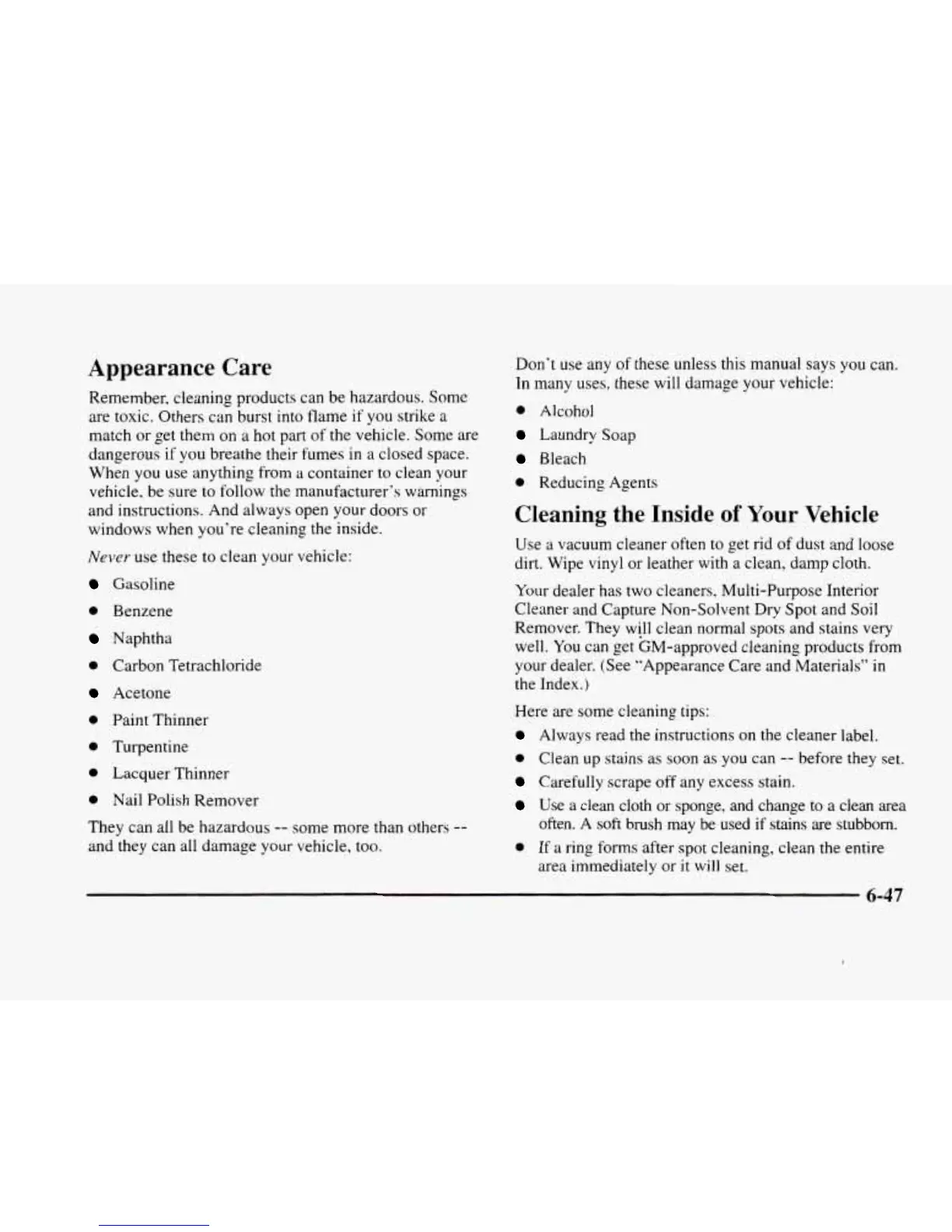 your dealer. (See “Appearance Care and Materials” in