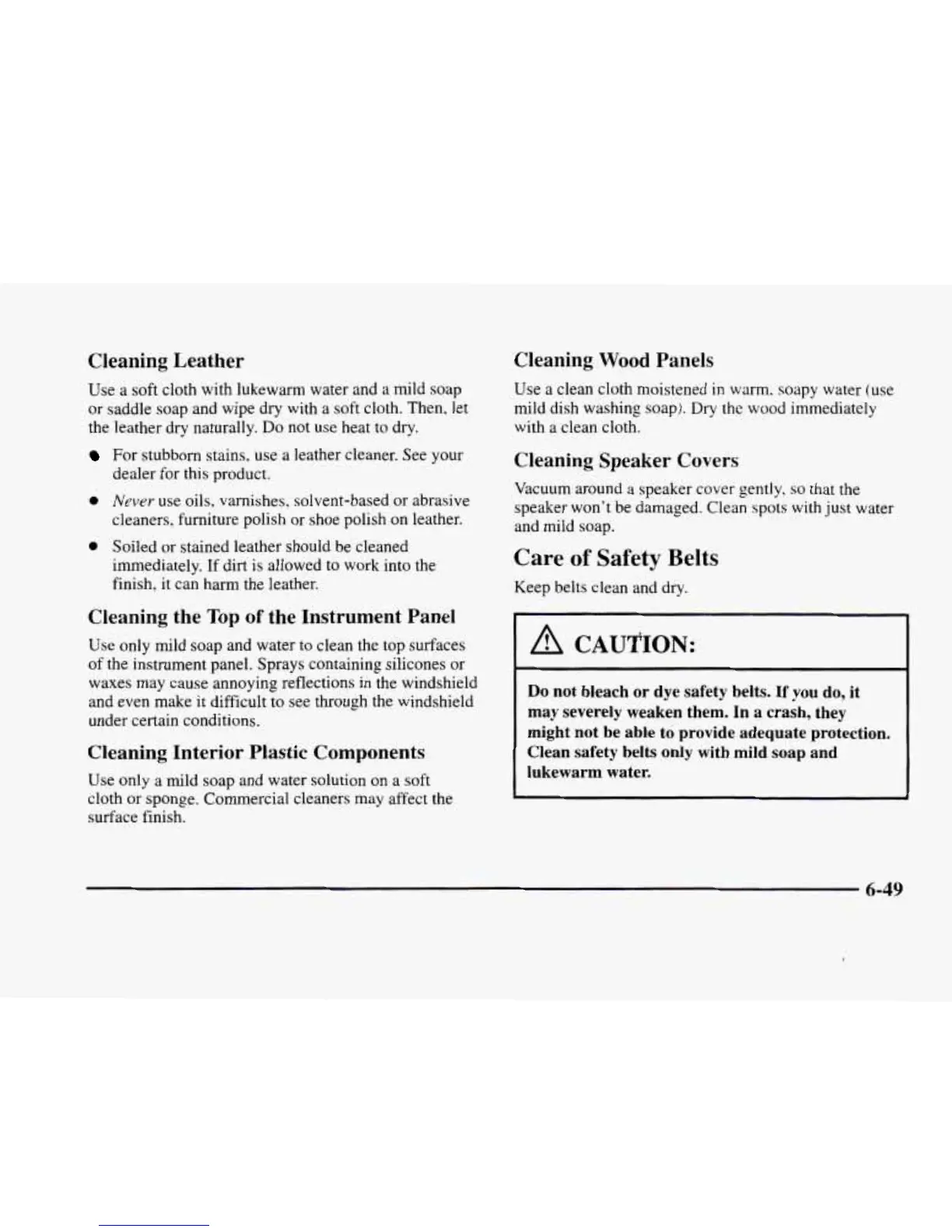 Clean safety belts only with mild soap