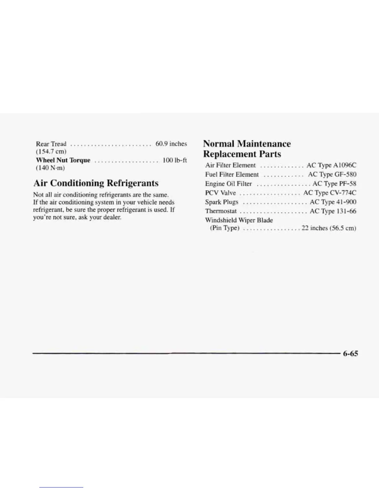 Cadillac 1998 Eldorado - Air Conditioning Refrigerants; Normal Maintenance Replacement Parts