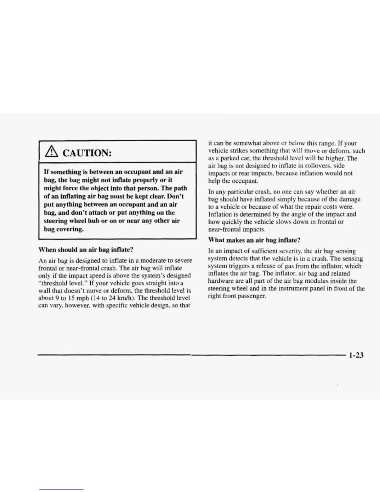 frontal or near-frontal crash. The air bag will inflate