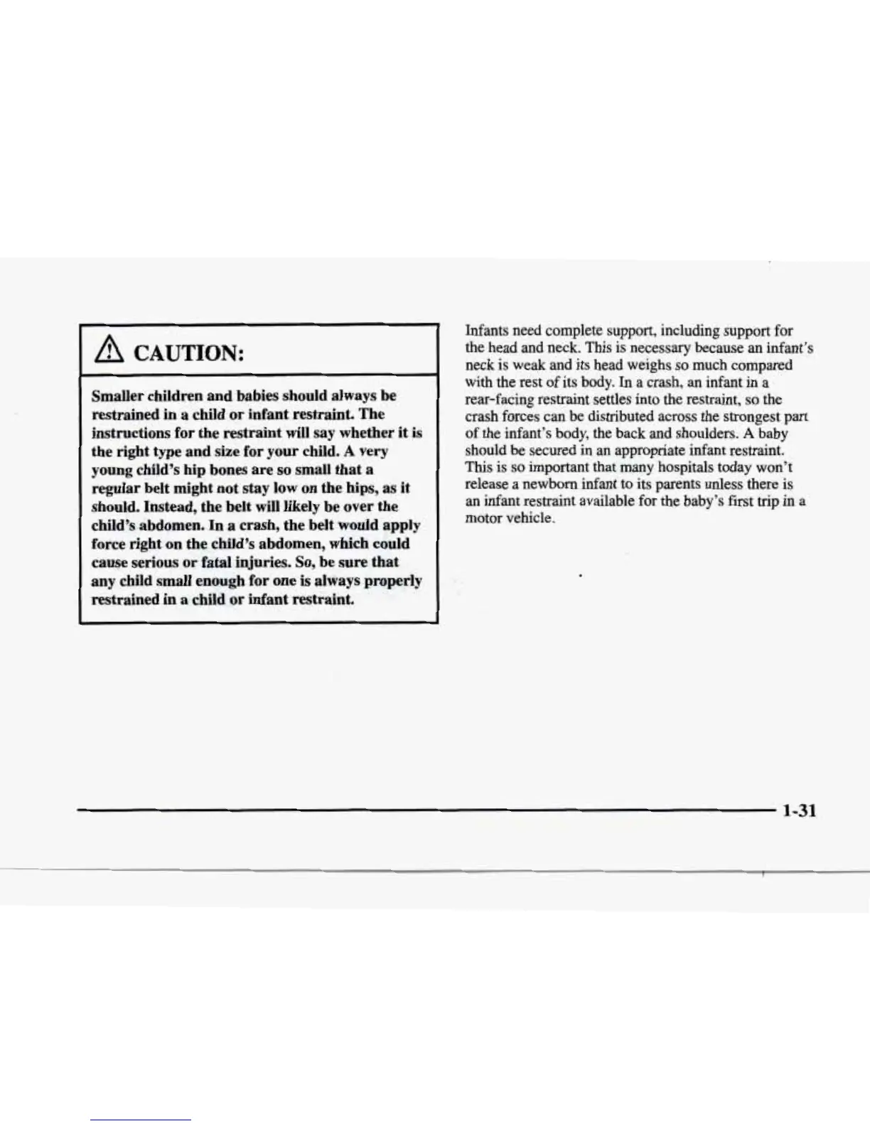 with the rest of its body. In a crash, an infant in a