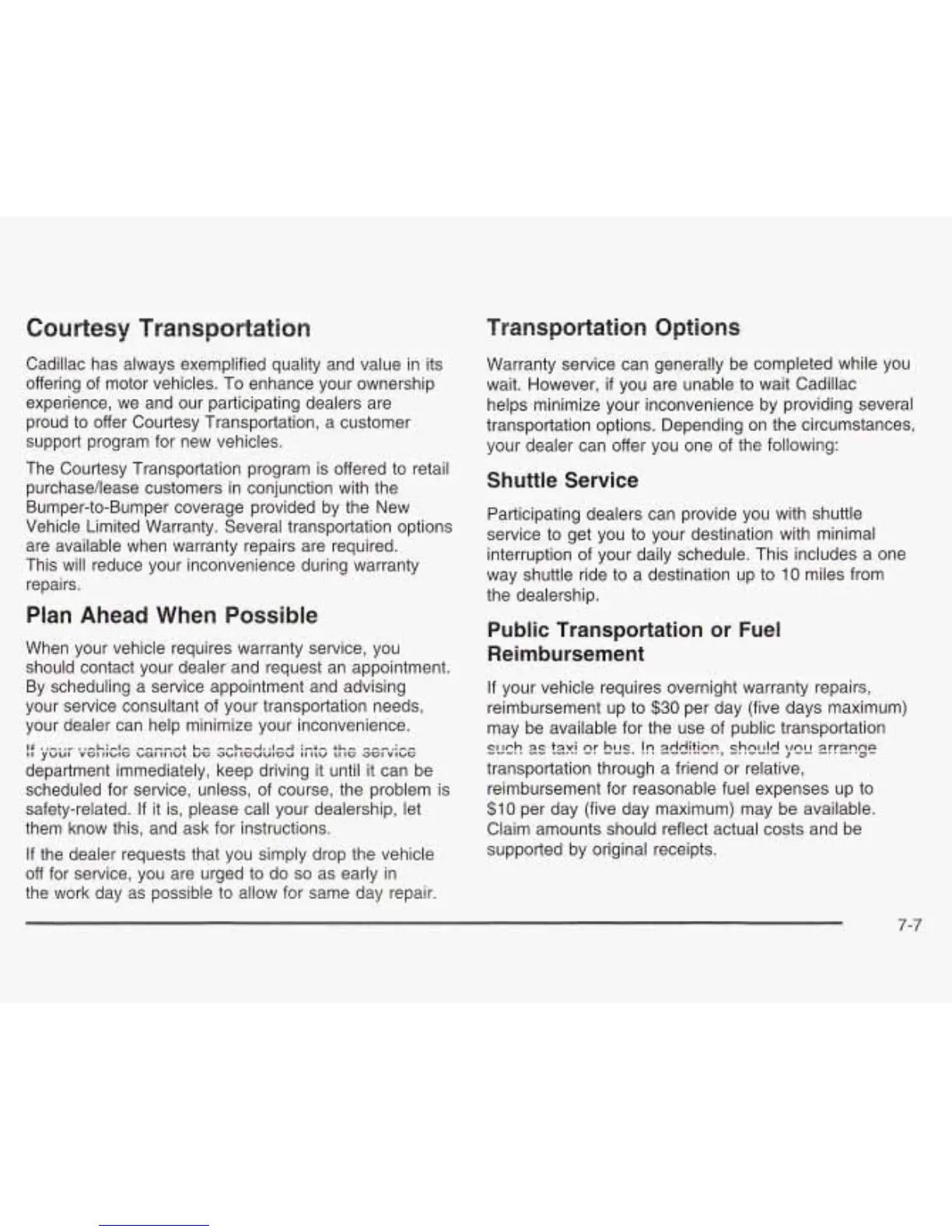 Vehicle Limited Warranty. Several transportation options