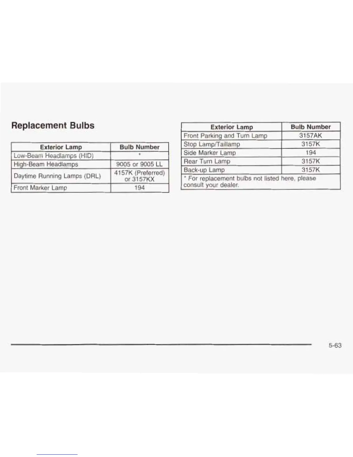 Cadillac 2003 Escalade - Replacement Bulbs