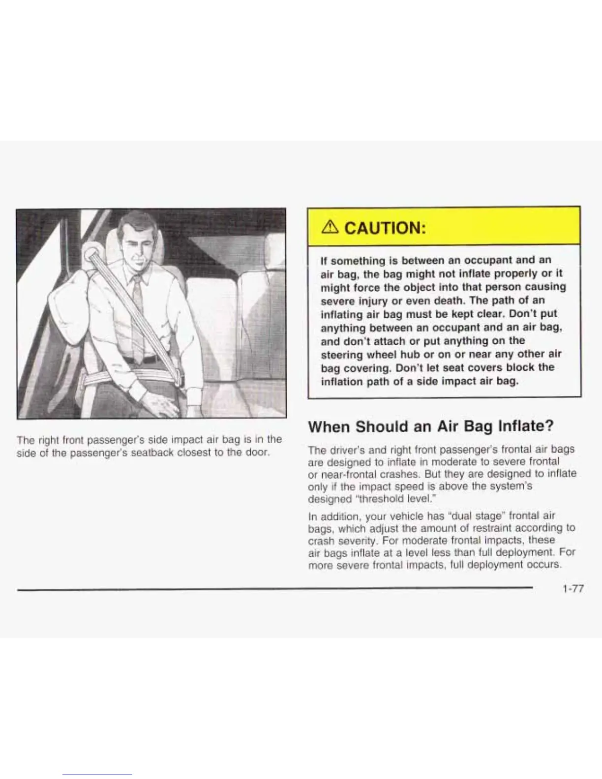 The right front passenger’s side impact air bag is in the