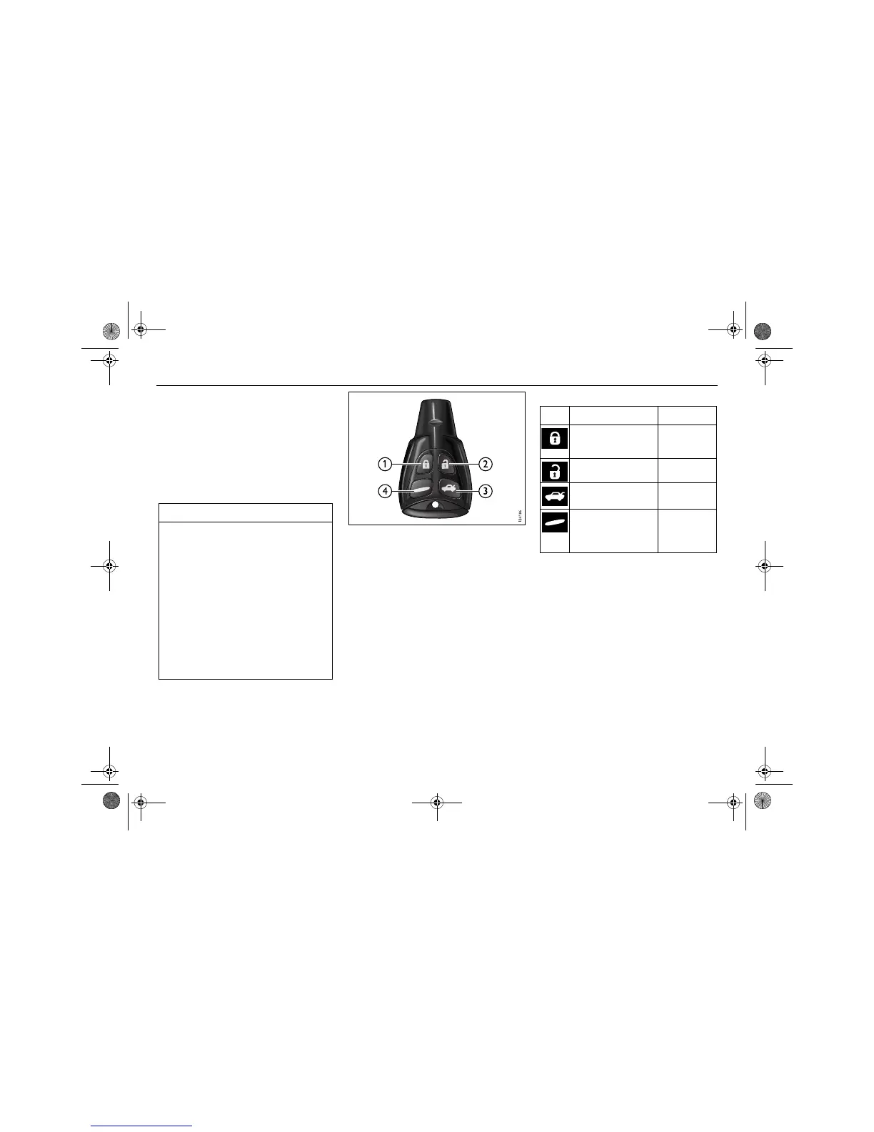 Unlocks all doors, fuel filler