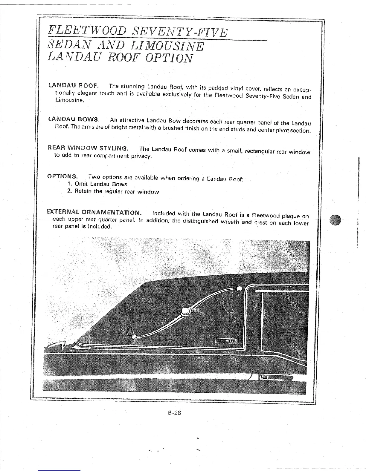 EXTERNAL ORWAMENTATIOW. Included with the Landau Roof is a Fleetwood plaque