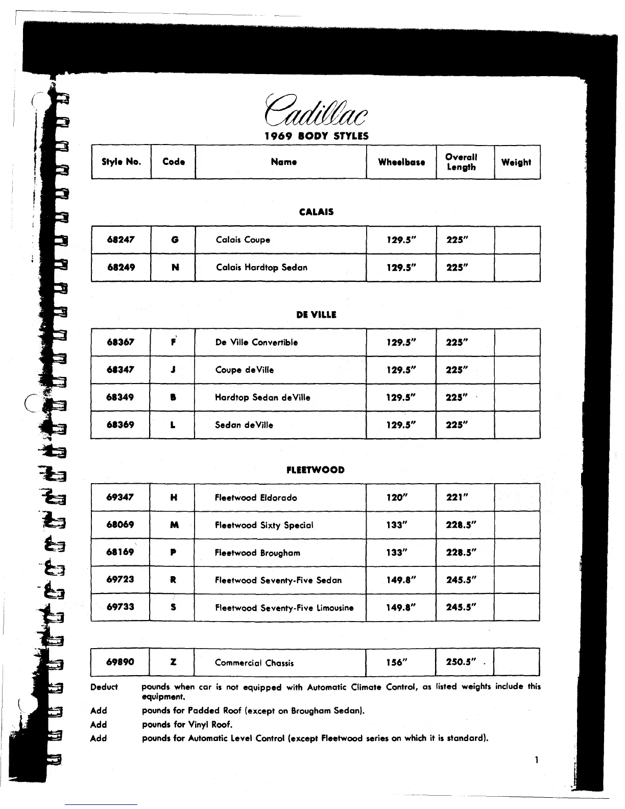 Add pounds for Padded Roof (except on Brougham Sedan).