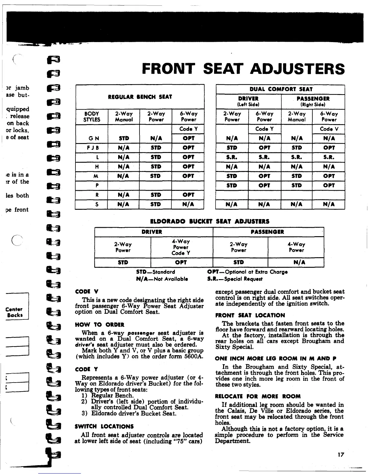 Way on Eldorado driver's Bucket) for the fol-
