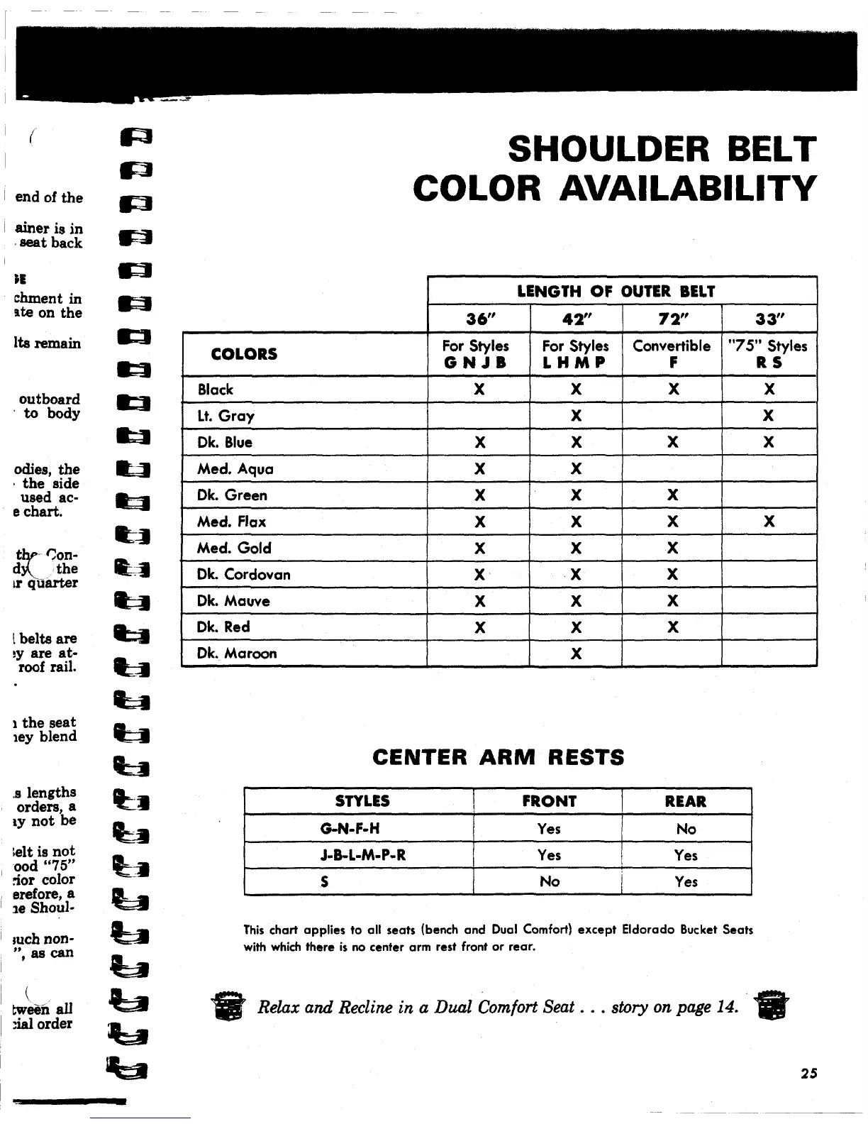 This chart applies to all seats (bench and Dual Comfort) except Eldorado Bucket Seats