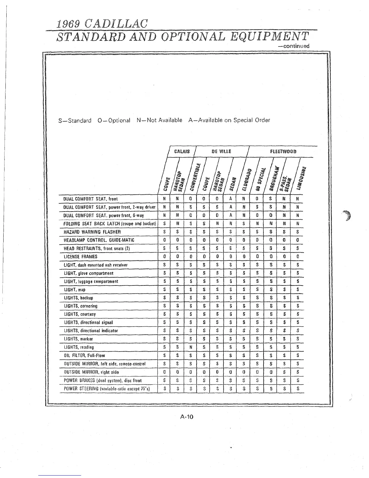 S—Standard 0-Optional