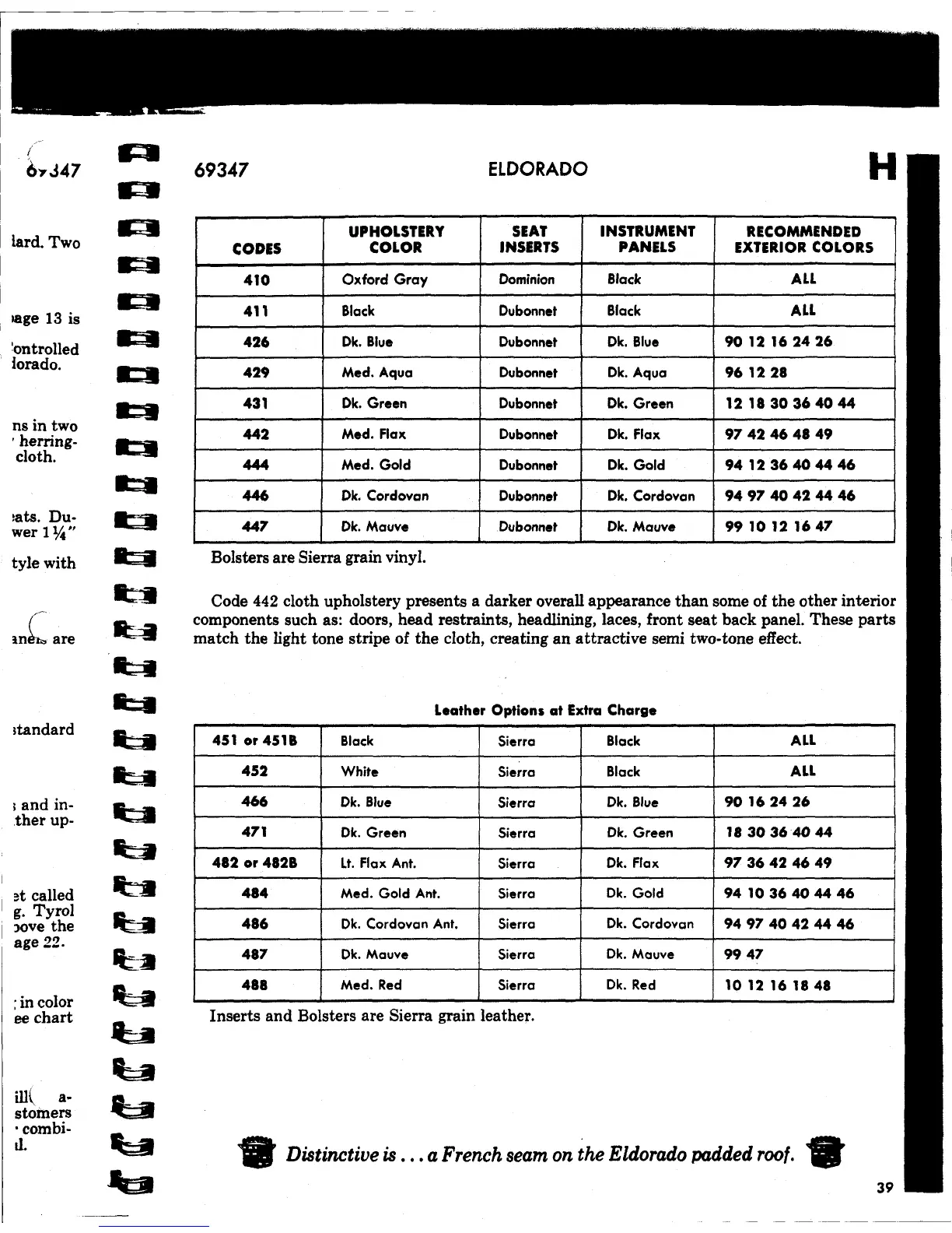 Code 442 cloth upholstery presents a darker overall appearance than some of the other interior