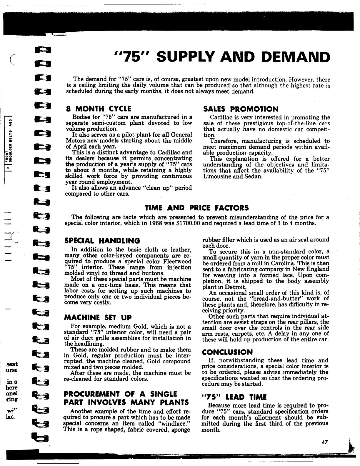 duce "75" cars, standard specification orders