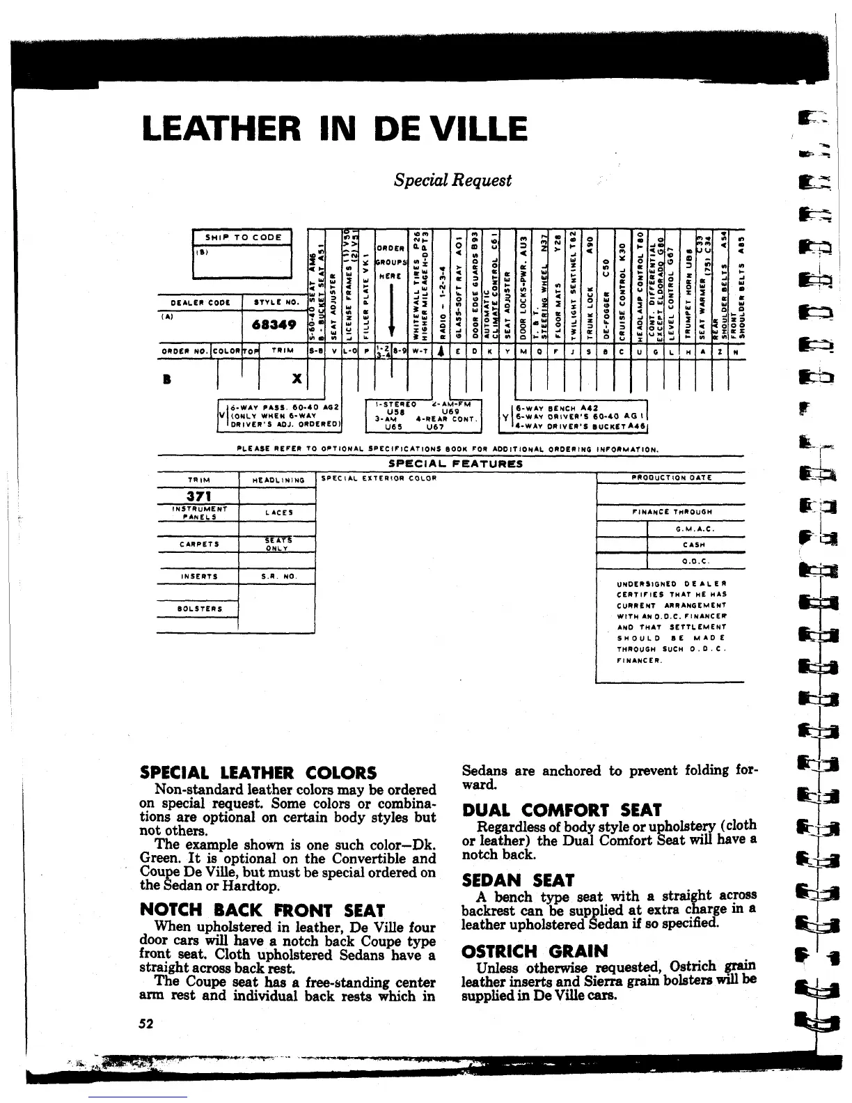 PLEASE REFER TO OPTIONAL SPECIFICATIONS BOOK FOP A00ITI0NAL 0R0ERINS INFORMATION.