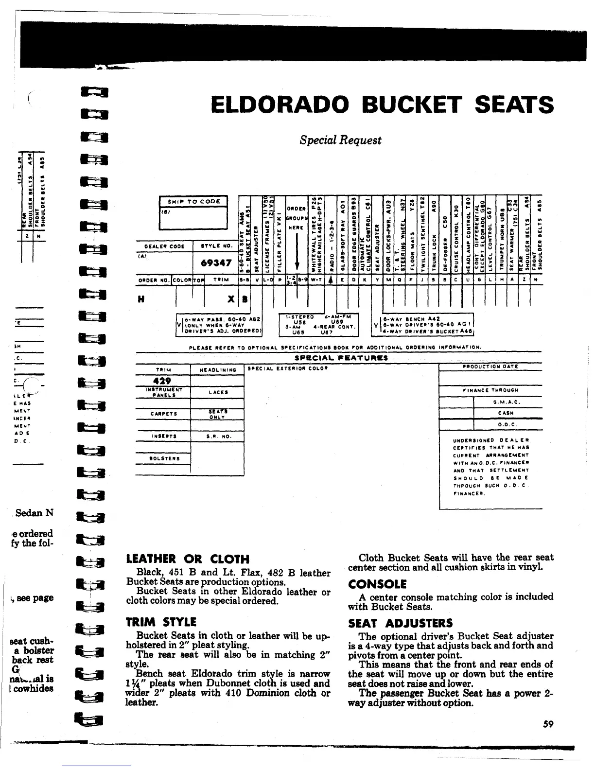Bucket Seats in other Eldorado leather or