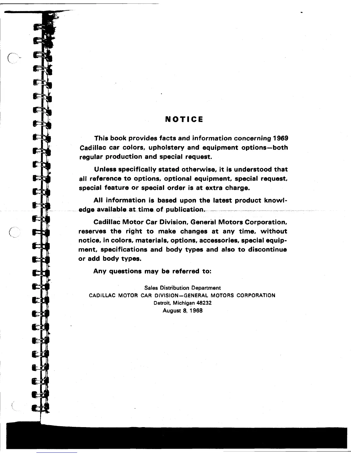 notice, in colors, materials, options, accessories, special equip-