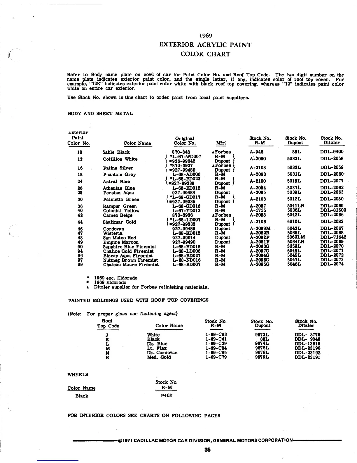 Use Stock No. shown in this chart to order paint from local paint suppliers.