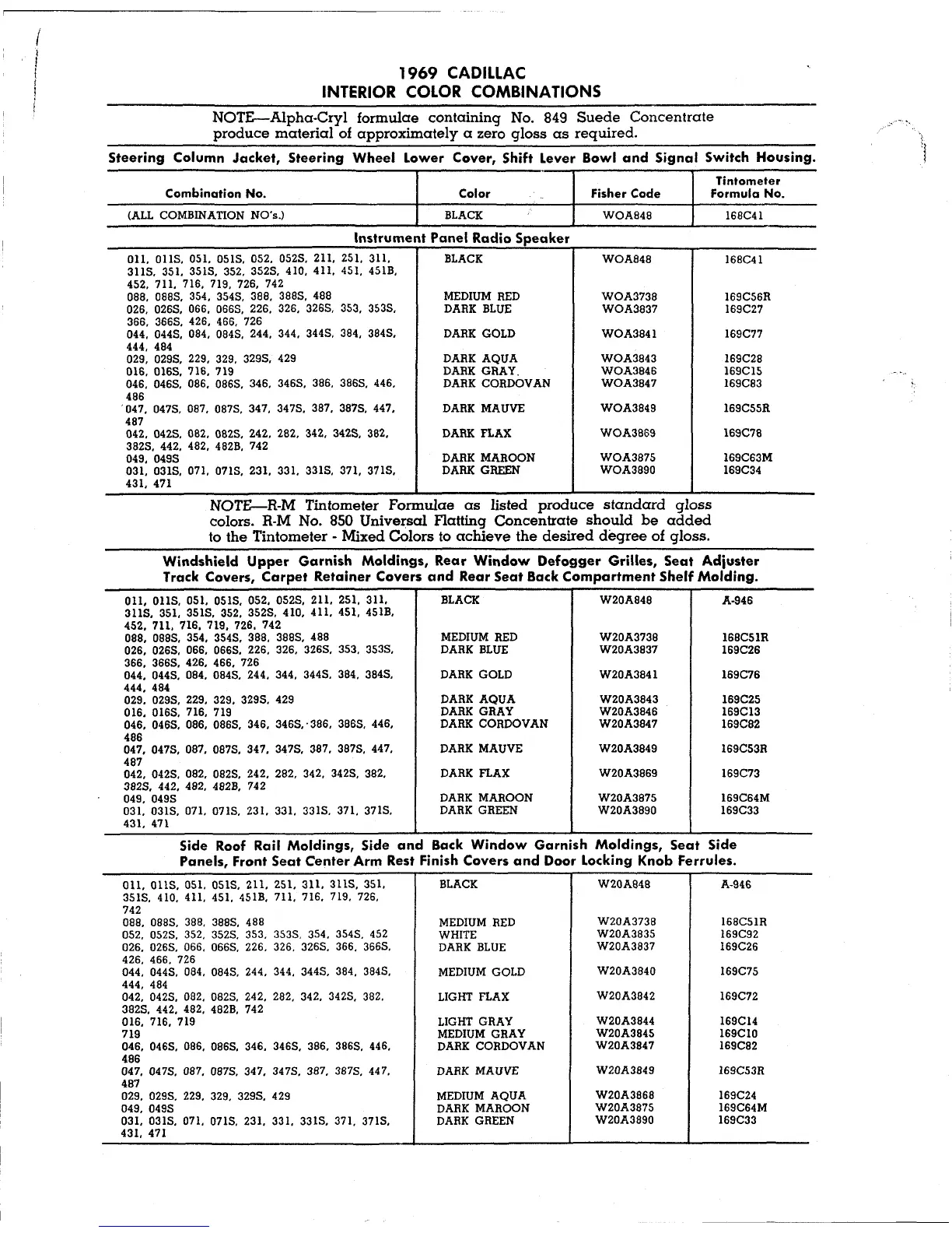 Panels, Front Seat Center Arm Rest Finish Covers and Door Locking Knob Ferrules.