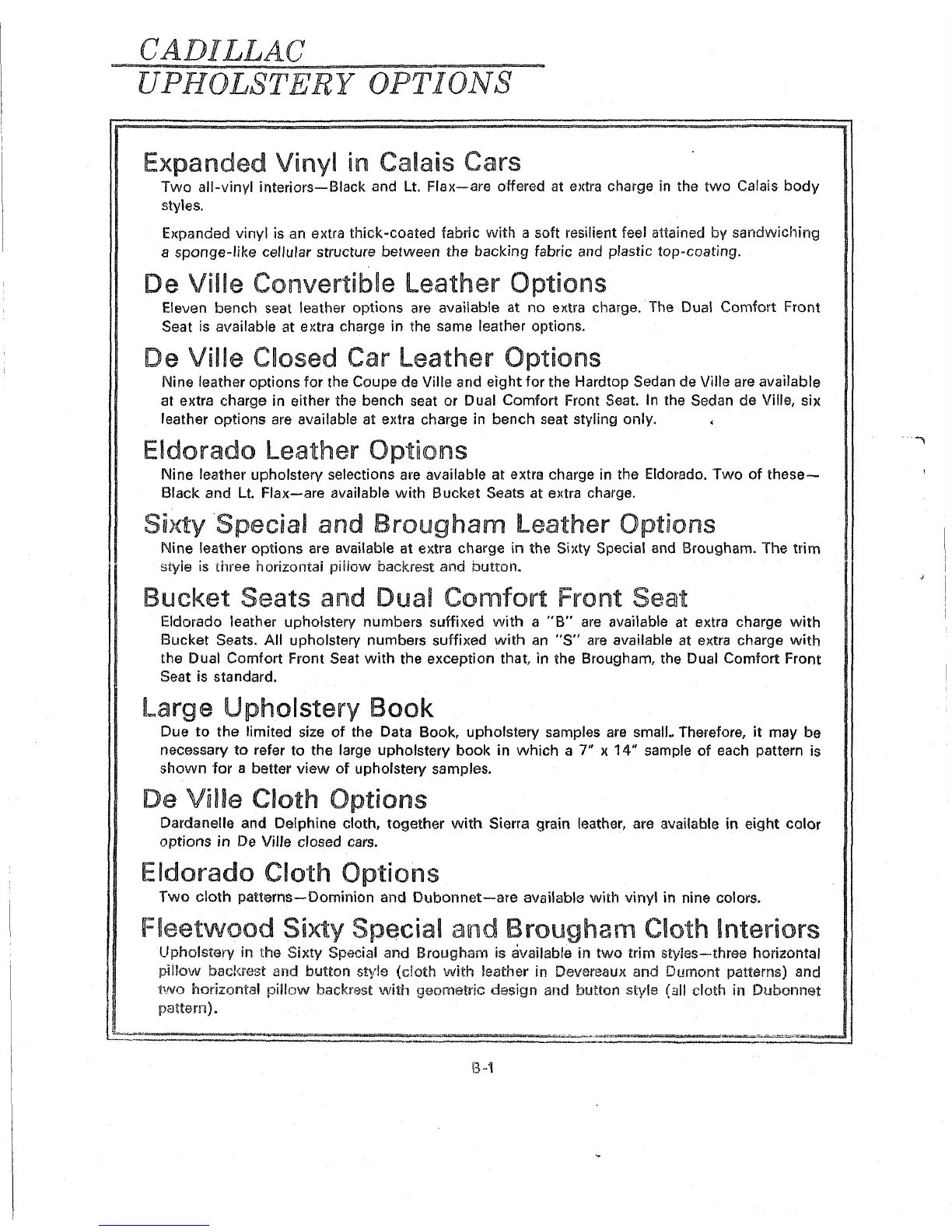 Eldorado leather upholstery numbers suffixed with a "B" are available at extra charge with